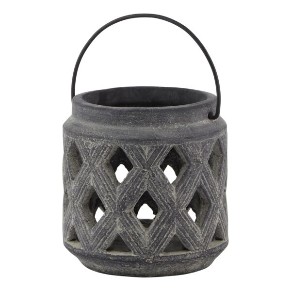 The grey lattice lantern showcases intricate geometric patterns that cast mesmerizing shadows when lit, bringing depth and character to any space. This distinguished piece reflects Mediterranean design influences with its contemporary grey finish and architectural detailing. Perfect for both indoor and outdoor settings, it pairs beautifully with the Amalfi Grey King Chess Piece and Hydria Pot from the same collection. For a cohesive display, consider combining with the Siena Brown Hurricane Lantern series or the Garda Grey Glazed vessels, creating a curated arrangement that speaks of refined taste and worldly sophistication. The lantern's proportions make it ideal as a centerpiece or as part of a grouped display on console tables, shelves, or garden settings.