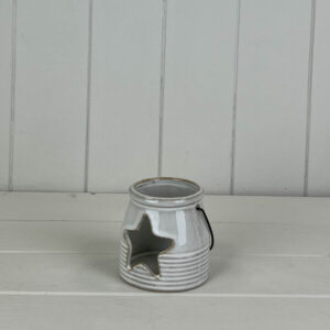 Ceramic Tealight Holder with Star Cut Out L8xW7.8cH7.8cm Weight-222g