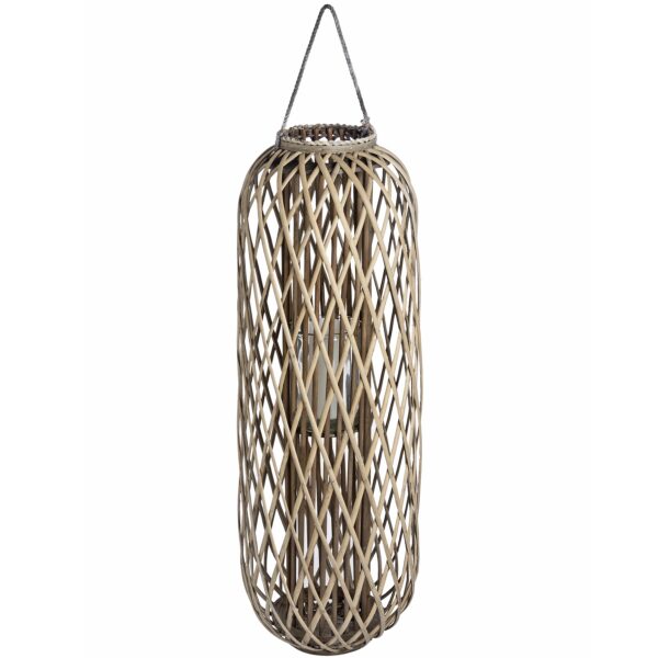 An artisanal wicker lantern that blends rustic appeal with contemporary design sensibilities, this substantial decorative piece adds depth and warmth to any setting. The intricate weaving pattern showcases traditional craftsmanship while creating mesmerizing shadow play when illuminated. Its substantial height makes it an ideal statement piece for entranceways, patios, or living spaces, while the natural rattan material adds organic texture and visual interest. Perfect for both indoor and outdoor use, this lantern creates an inviting atmosphere during all seasons. For enhanced visual impact, pair with our coordinating Bulbous Wicker Lanterns in varying sizes, complement with the Regola Matt White Ceramic Vase for textural contrast, or combine with our LED candle collection to create a safe and atmospheric lighting display. The versatility of this piece allows it to seamlessly integrate into multiple design schemes, from coastal-inspired spaces to modern farmhouse aesthetics.